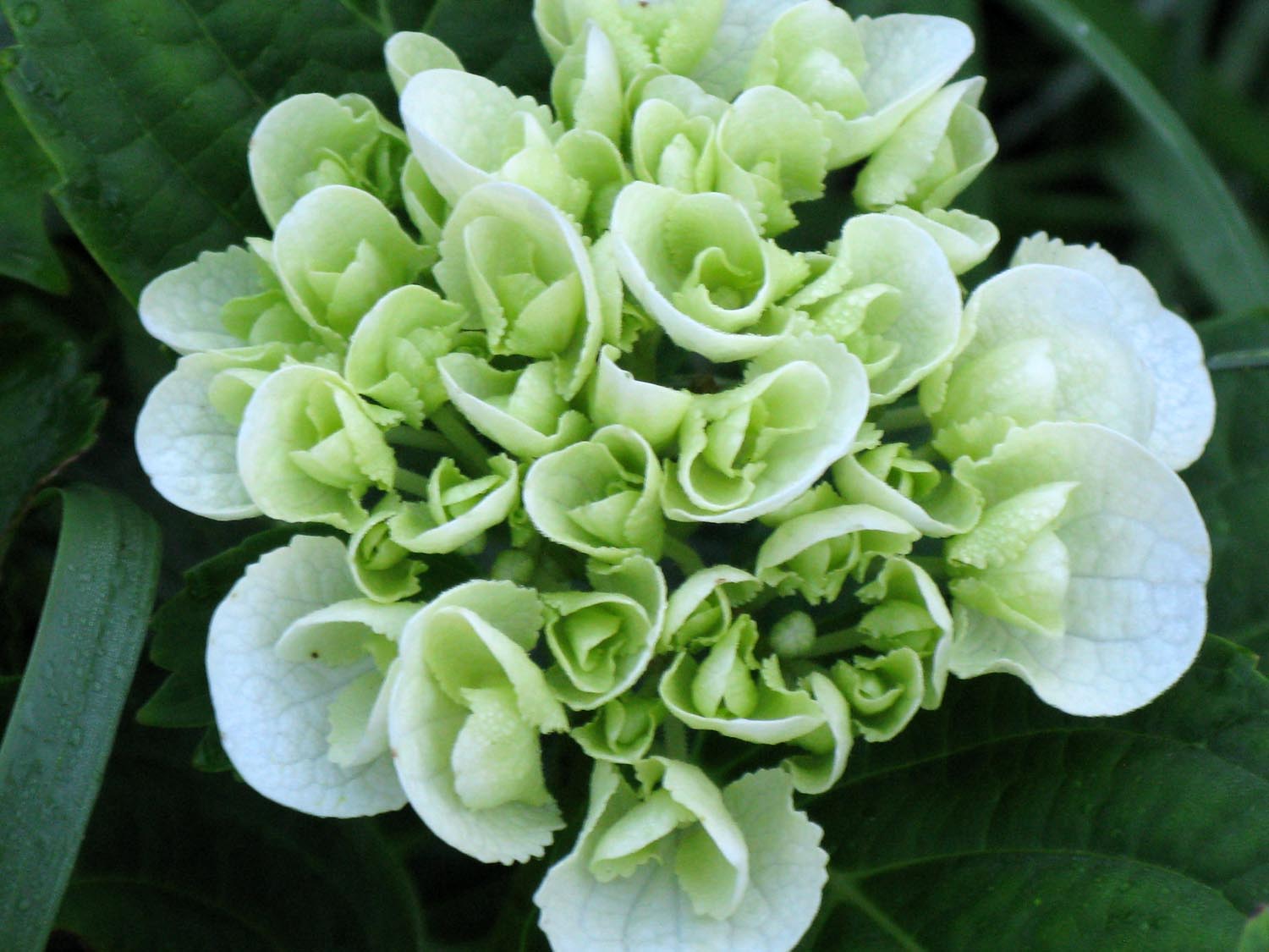 The hydrangea is quite happy and is doing well. As I mentioned before when we got the plant the flowers were purply/blue and now not so much. The flowers now are this beautiful creamy white, with just a hint of green. Hmmn, I don’t know if this is from the “stress” of being replanted & treated or the flowers are really white. I know that the color of the flowers has a lot to do with the soil that it’s planted in so I’m thinking if the hydrangeas on the rest of the block are any indication they’ll return to either the purply blue or pink either later this year or sometime next year. We’ll just have to wait & see. In the meantime I’m thrilled to have this beautiful, happy plant that is flowering beautifully!